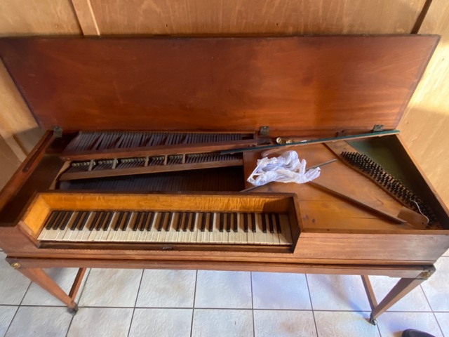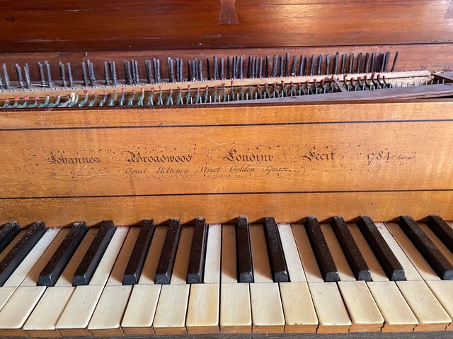 General description: Square piano by John Broadwood, London, England, 1784. Six-octave compass. Mounted on a stand. Condition not fully assessed. Inventory number: T93.